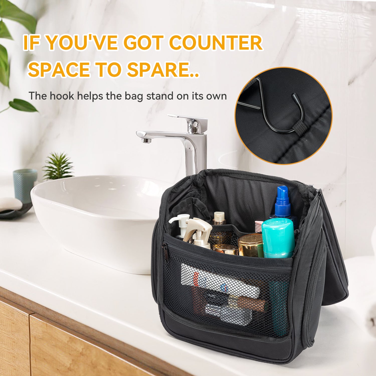 Equipped with a hanging hook for easy setup in bathrooms or travel accommodations, allowing for quick access to your cosmetics and toiletries.