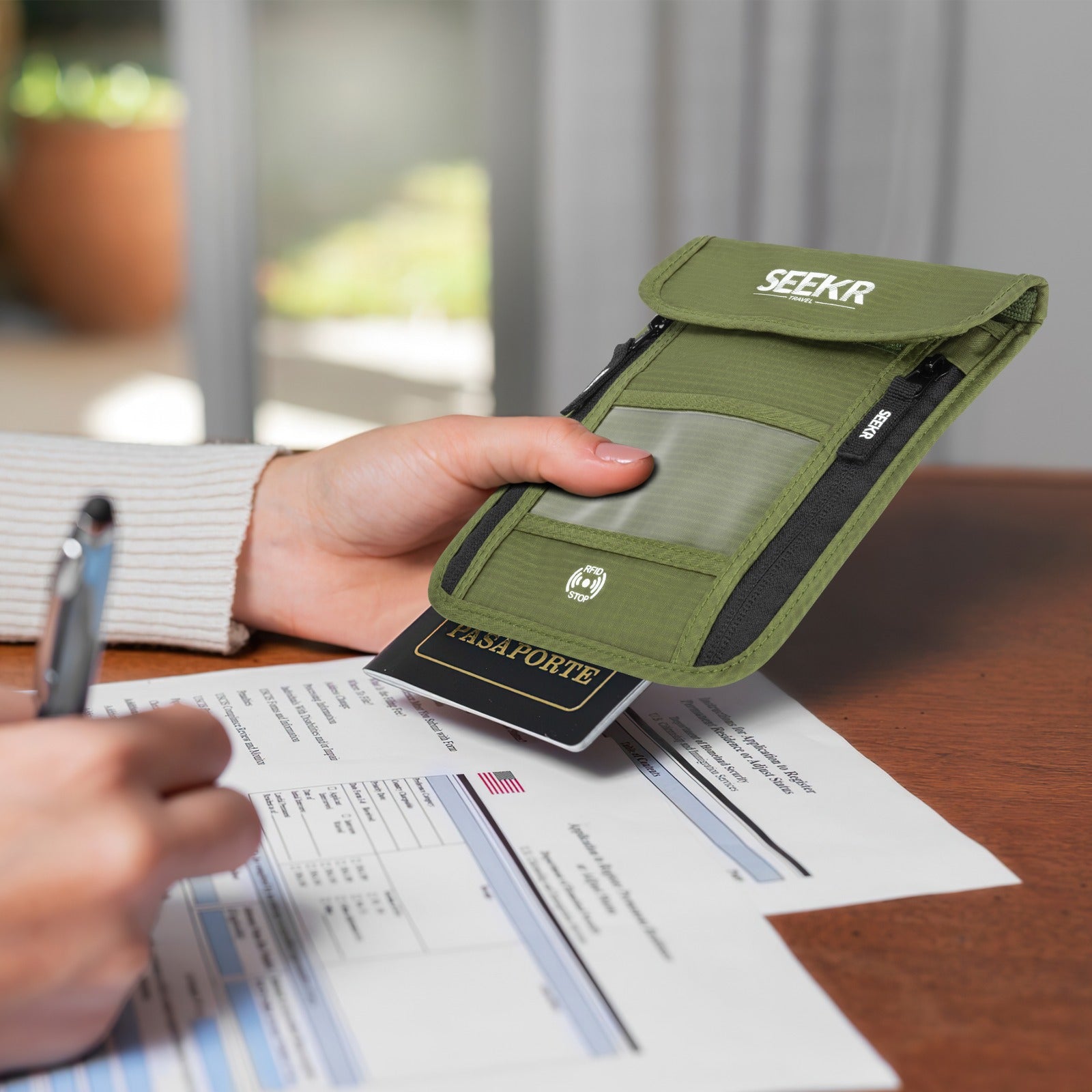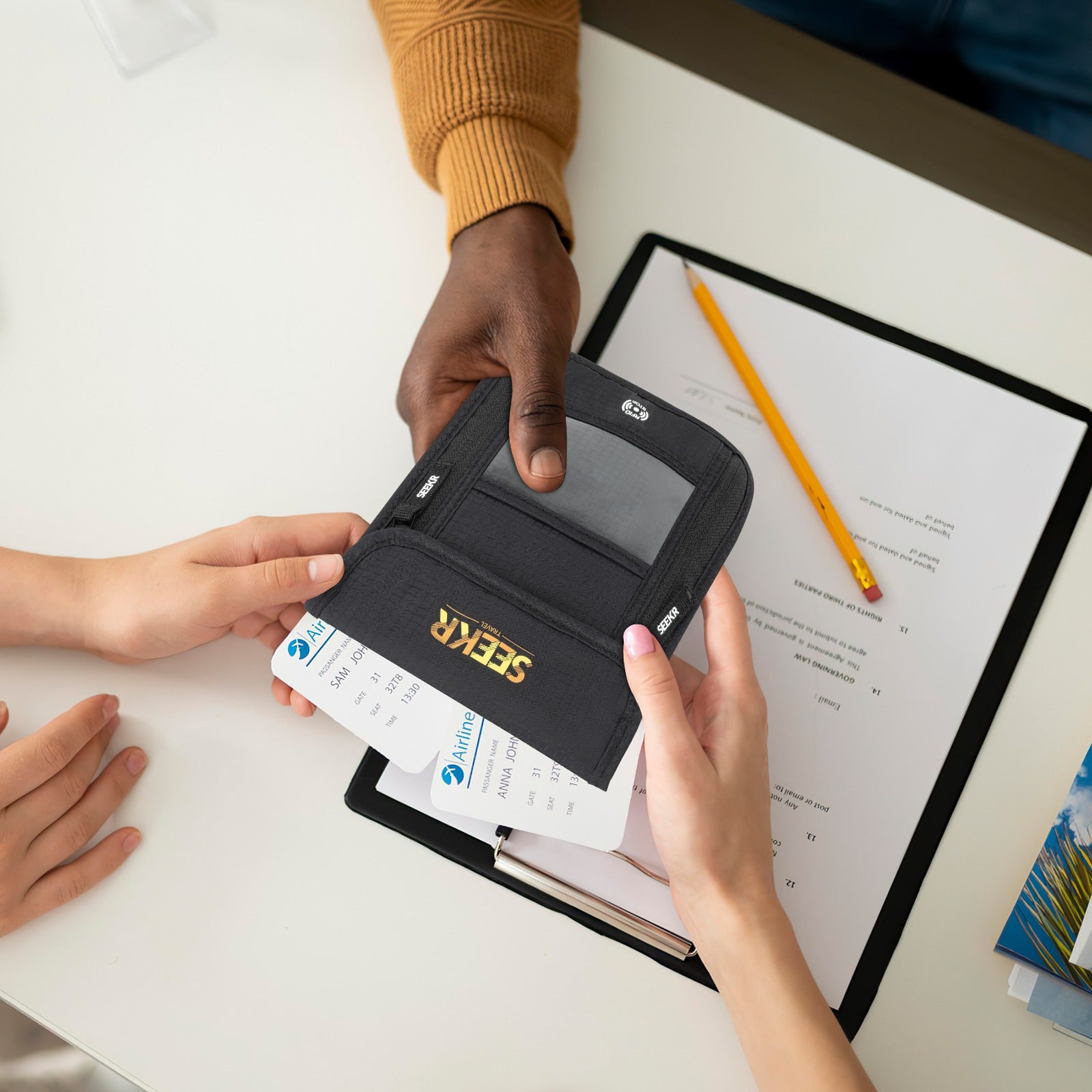 Introducing the ultimate passport holder with travel eye mask from Seekr travel, your perfect travel companion designed to keep your essentials secure and easily accessible during any adventure. Crafted with top-notch features, this passport wallet combines functionality, style, and security seamlessly.